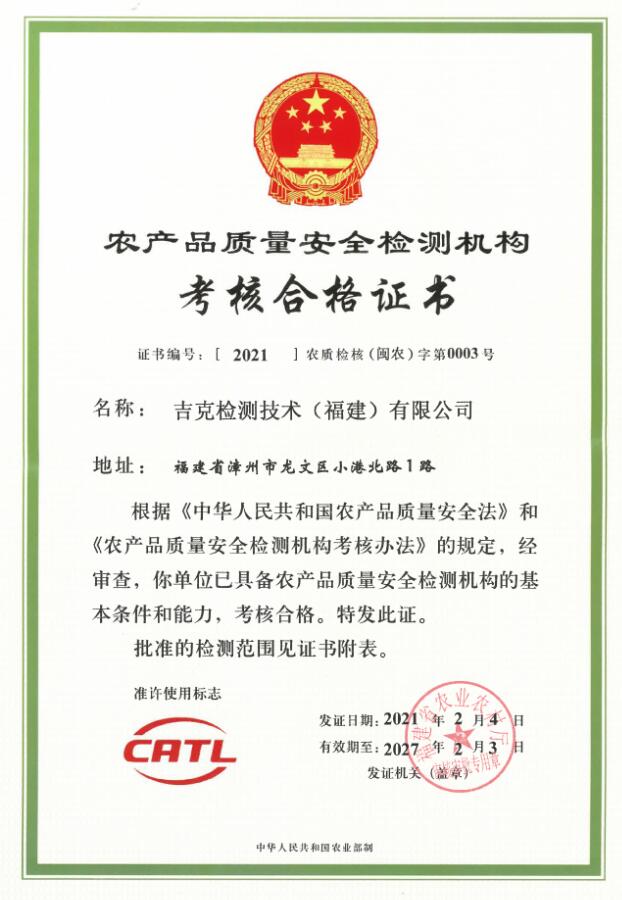 吉克檢測技術(shù)(福建)有限公司,位于福建省漳州市龍文區(qū)小港北路1號,于2019年8月注冊成立,是一家獨立的第三方檢測公司。公司已經(jīng)通過檢驗檢測機構(gòu)計量認證(CMA)、農(nóng)產(chǎn)品質(zhì)量安全檢測機構(gòu)資質(zhì)認證(CATL),獲得中國合格評定國家認可委員會(CNAS)認可。公司本著“嚴謹、規(guī)范、高效、協(xié)作”的原則和對客戶及社會高度負責(zé)的精神,充分利用本公司優(yōu)質(zhì)的檢測環(huán)境、先進的檢測設(shè)備和專業(yè)的技術(shù)人員,第一時間為客戶提供科學(xué)、公正、準(zhǔn)確的檢驗檢測報告。 公司實驗室面積1100多平方米,儀器設(shè)備兩百多臺(套),固定資產(chǎn)一千多萬元,在職員工31人,技術(shù)人員中的中高級職稱及同等能力人數(shù)占60%以上。我們的服...